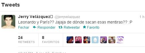 Muitas pessoas andam falando que haverá uma Paris vivida por Valeria Baroni e um Leonardo que será um dos amores de Angie. Nessa segunda-feira o ator Jerry Velazquez ( que viveria esse tal Leonardo) esclareceu esses boatos mentirosos.